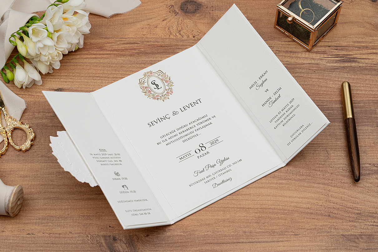 Davetiye Ofset, Varak Yaldız ve Serigraf Boya baskı tekniğine uygun olup, baskı fiyatı ayrı olarak ücretlendirilir.